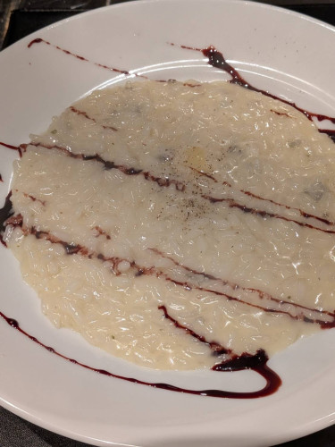 シンプルにトマトソースのリゾットの上にブラータチーズをトッピング。
